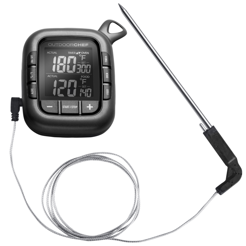 Termómetro para poder controlar la temperatura interior de los alimentos que está preparando. Los buenos parrilleros saben de la importancia de asar los alimentos a la temperatura más adecuada.